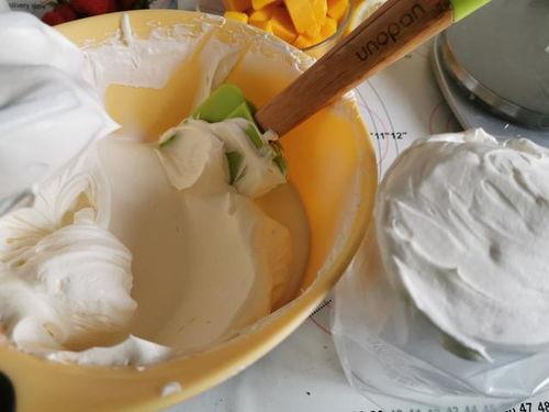 3. 将调好色的奶油重新放入打发器中,继续打发至理想状态。
